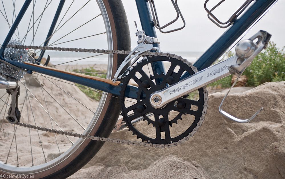 The White Industries VBC cranks have a narrow 150mm q-factor and can operate with a 24 tooth difference between chainrings; although I’d recommend a 16-20 tooth difference so that you don’t exceed the capacity of your road rear derailleur. Inner rings start at 24t and go up in even increments. There is both a BB30/PF30 model and a square taper model for those with threaded bottom brackets.