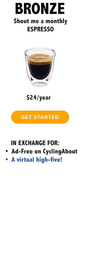 My mission has always been to create a forum for honest information of a sort that rarely exists in online media. After all, we all want to read what needs to be said about products. If you can afford to shout me a coffee every month in return for a higher-quality, unbiased, ad-free time on CyclingAbout.com, I’d be eternally grateful.